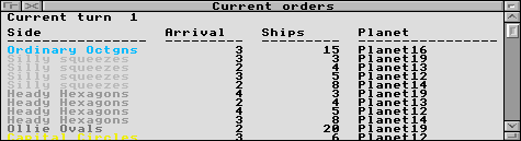 This window is automatically updated at the start of a human controlled sides go. To show information on another planet click over it on the main window.